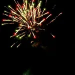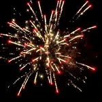 1. Салют из красных, зеленых, серебряных хризантем с мерцанием. 2. Золотые трещащие мерцающие огни.