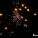 1. Разноцветные кометы разрываются сферами. 2. Серебряные форсы с красными и зелеными огнями на концах. 3. Серебряные форсы с красными огнями на концах и синие огни. 4. Серебряные форсы с серебряными огнями на концах. 5. Трещащие огни.